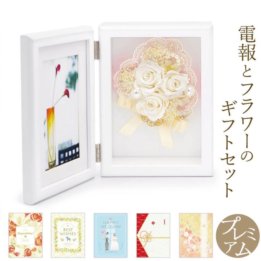プリザーブドフラワー電報 フォトフレーム コンチェルト グロッソ と プレミアムカード電報 のセット 電報 祝電 お祝い ギフト 花 結婚式 誕生日 Mi063 P 電報屋のエクスメール Yahoo 店 通販 Yahoo ショッピング